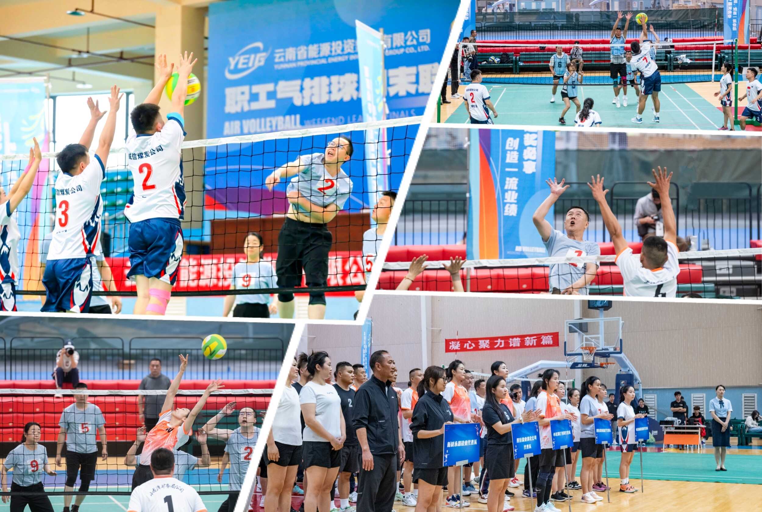 总决赛汇聚了五大区域冠军队伍,分别是:昆明区域冠军昆明盐矿代表队、曲靖区域冠军盐业滇北代表队、红河区域冠军小龙潭矿务局公司代表队、昭通区域冠军威信煤炭代表队,以及保山区域冠军永昌硅业代表队。五强齐聚,角逐巅峰!五支区域冠军队伍以球会友、奋力拼搏。赛场上,队员们默契配合、巧妙传球、果断进攻,每一次扣杀与防守都引来阵阵喝彩,充分展现了能投人团结协作、勇于争先的精神风貌。