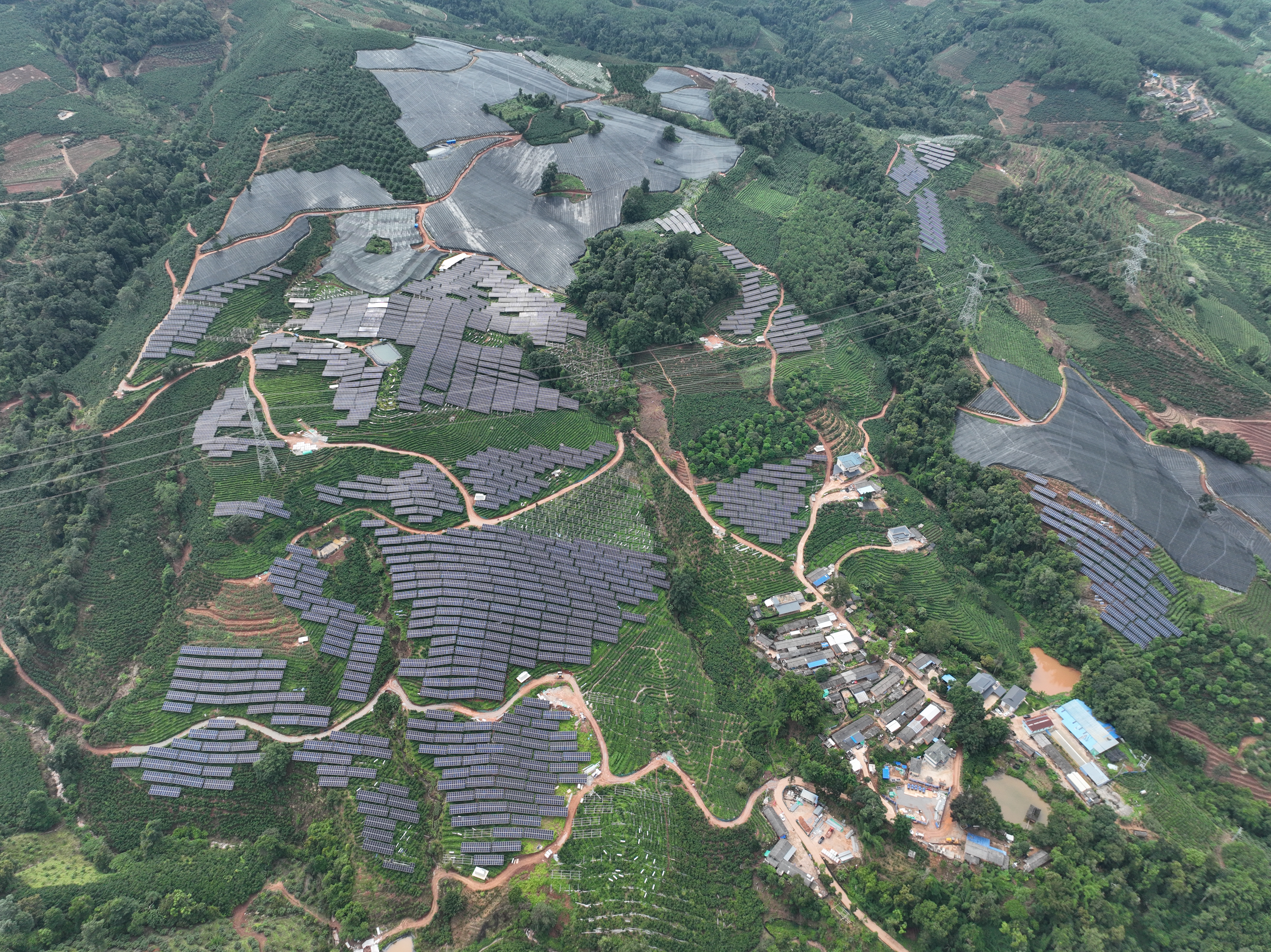 凤庆雪山镇光伏发电项目以“茶光互补”模式实现生态与效益双赢。项目规划装机10万千瓦,总投资约4.96亿元,锚定9月20日并网投产目标。面对持续雨季影响,团队抢抓晴好天气赶进度,目前阵列区施工已完成70%,升压站进入全面建设阶段。项目建成后,年减碳约13.61万吨,将为当地能源结构优化添砖加瓦。