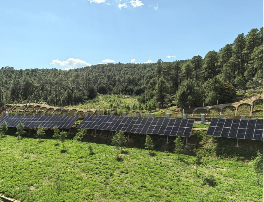 保山市隆阳区旧寨村光伏发电项目以“草光互补”模式践行生态承诺,规划建设35.2MW额定容量,配套新建35kV开关站。项目团队创新采用人工打孔替代机械开挖、无人机吊装组件等工艺,最大限度降低对地表植被与土壤的扰动。目前项目稳步推进,建成后预计年上网电量5991.2万kW・h,年节约标煤1.85万吨、减碳4.9万吨,为滇西生态安全屏障建设贡献力量。