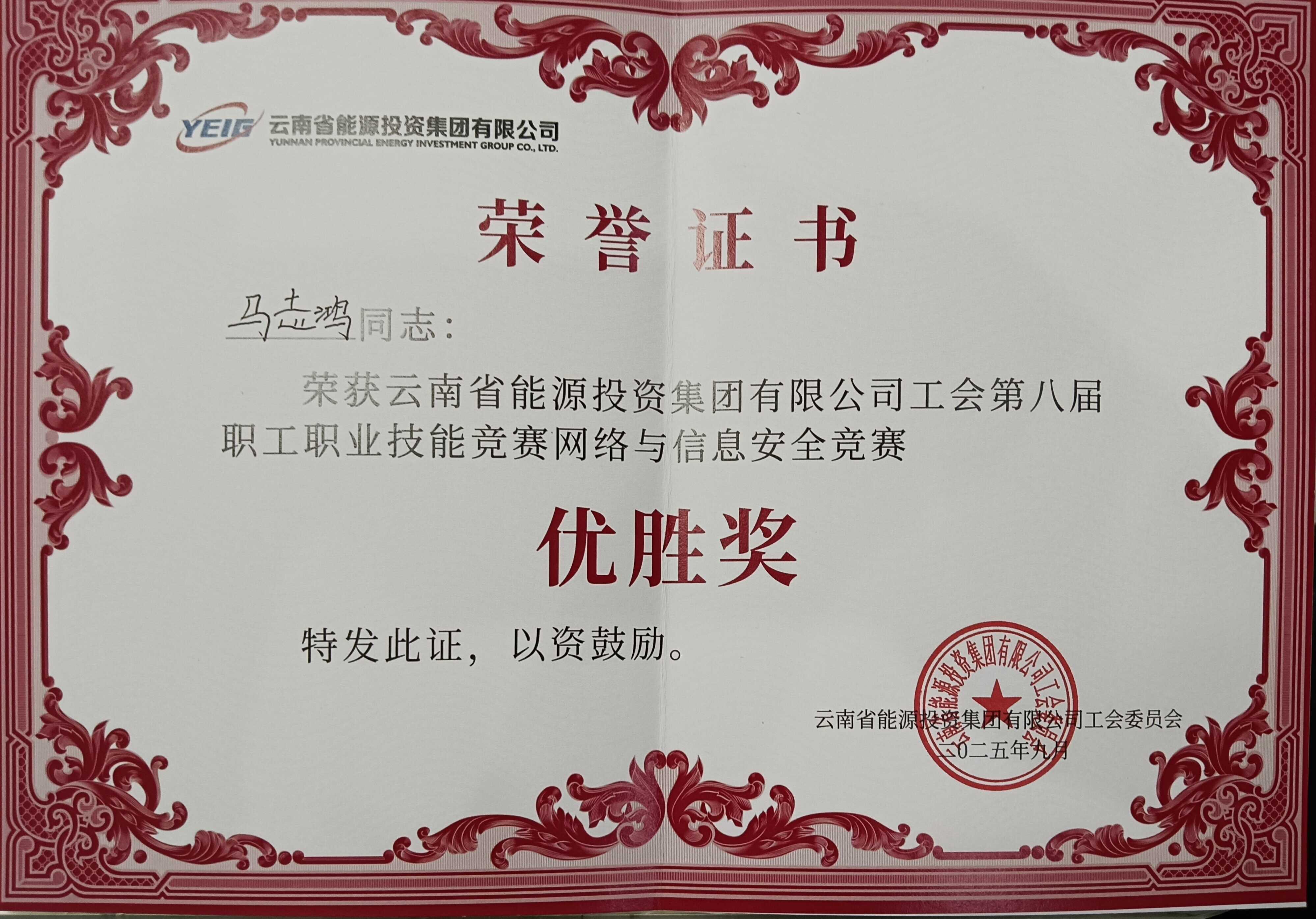 在集团职工职业技能竞赛网络与信息安全员竞赛中,公司选派的职工凭借扎实技能和过硬素质积极参赛,马志鸿同志表现优异,荣获“太阳集团网址第八届网络与信息安全职业(工种)技术能手”称号,展现了公司网络安全人才培养成果。其他同志也积累了宝贵经验,为公司网络安全防护贡献了力量。