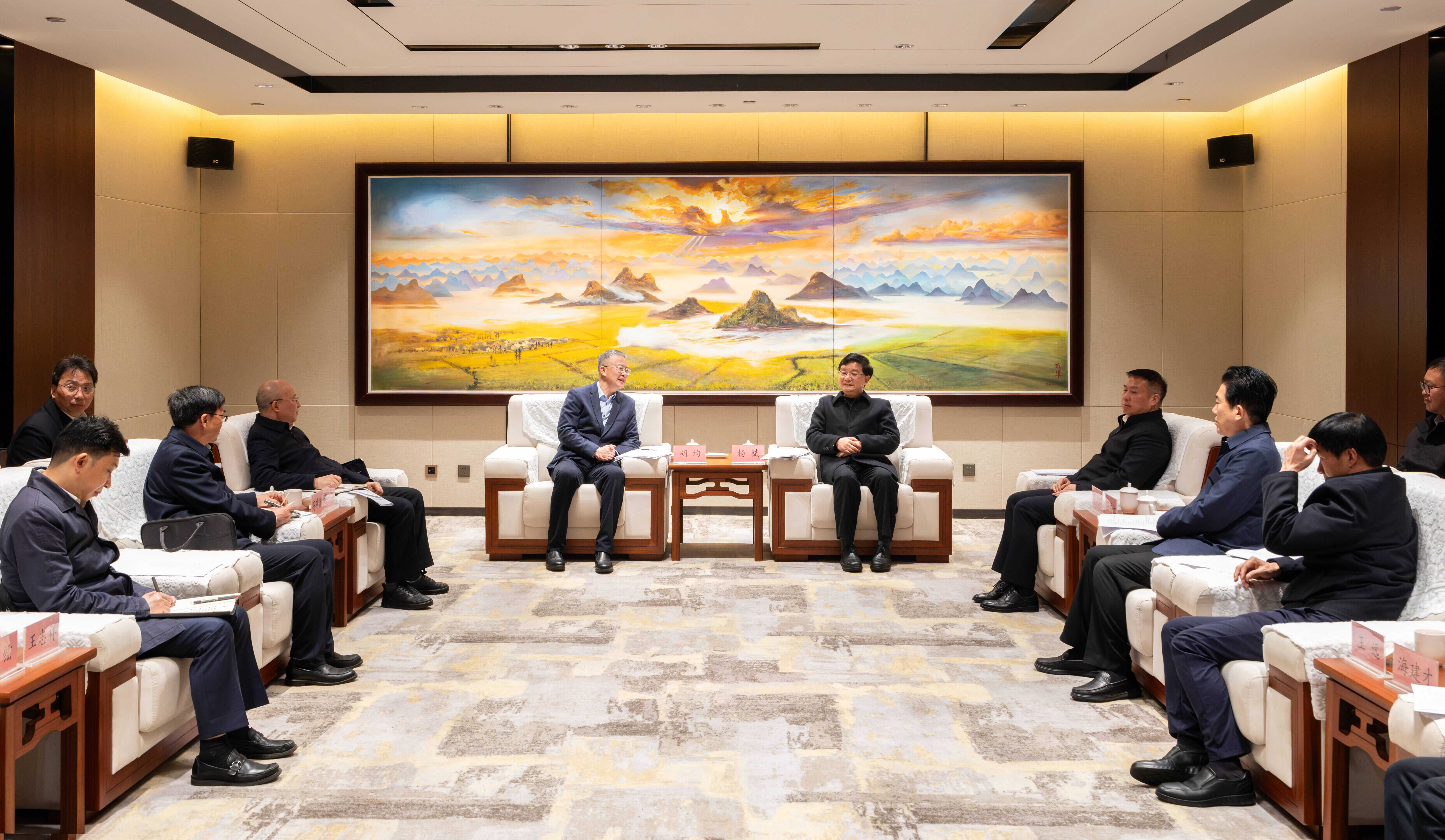 胡均对曲靖市一直以来给予两家集团在产业发展、项目建设方面的大力支持和帮助表示感谢。他说,曲靖能源资源丰富、工业基础扎实、营商环境好,市委市政府在能源发展战略布局和产业发展路径与两家集团的能源主业细分领域“8+X”支柱“风光水火、天然气、煤炭、现代物流、新材料和新能源新赛道”高度契合,合作潜力巨大、空间广阔。希望三方基于当前良好的合作基础,进一步深化在新能源、煤炭、化工新材料等领域的合作,充分发挥曲靖市作为两家集团“最全的产业布局基地、最大的一体化产业运营平台、最全最好的资源禀赋区域、最具未来合作潜能的州市”的发展优势,务实有力推动项目落地见效,积极践行国企社会责任,力争打造更多像通泉风电项目类型的典型样板工程,为曲靖经济社会高质量发展作出更大贡献。