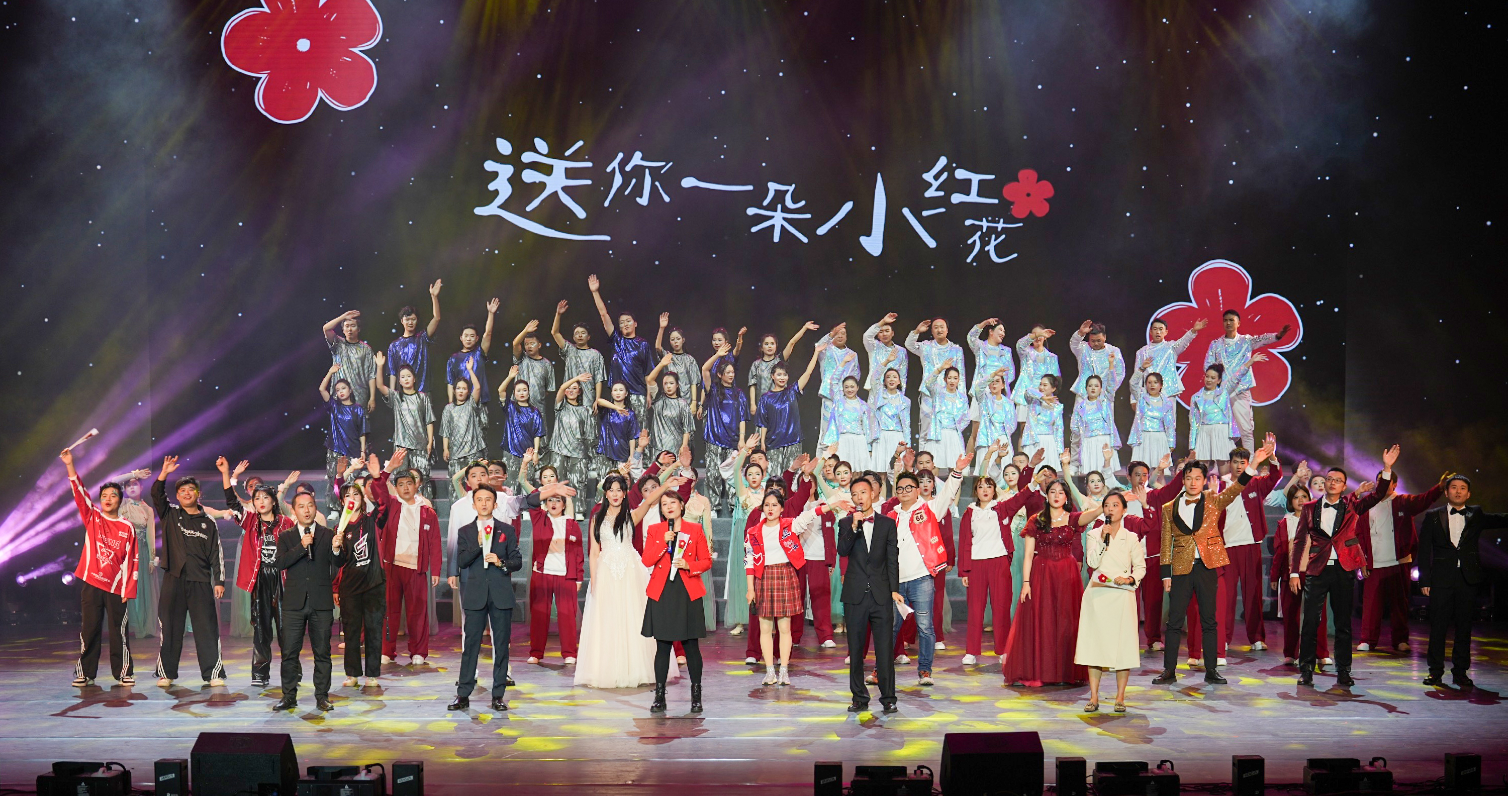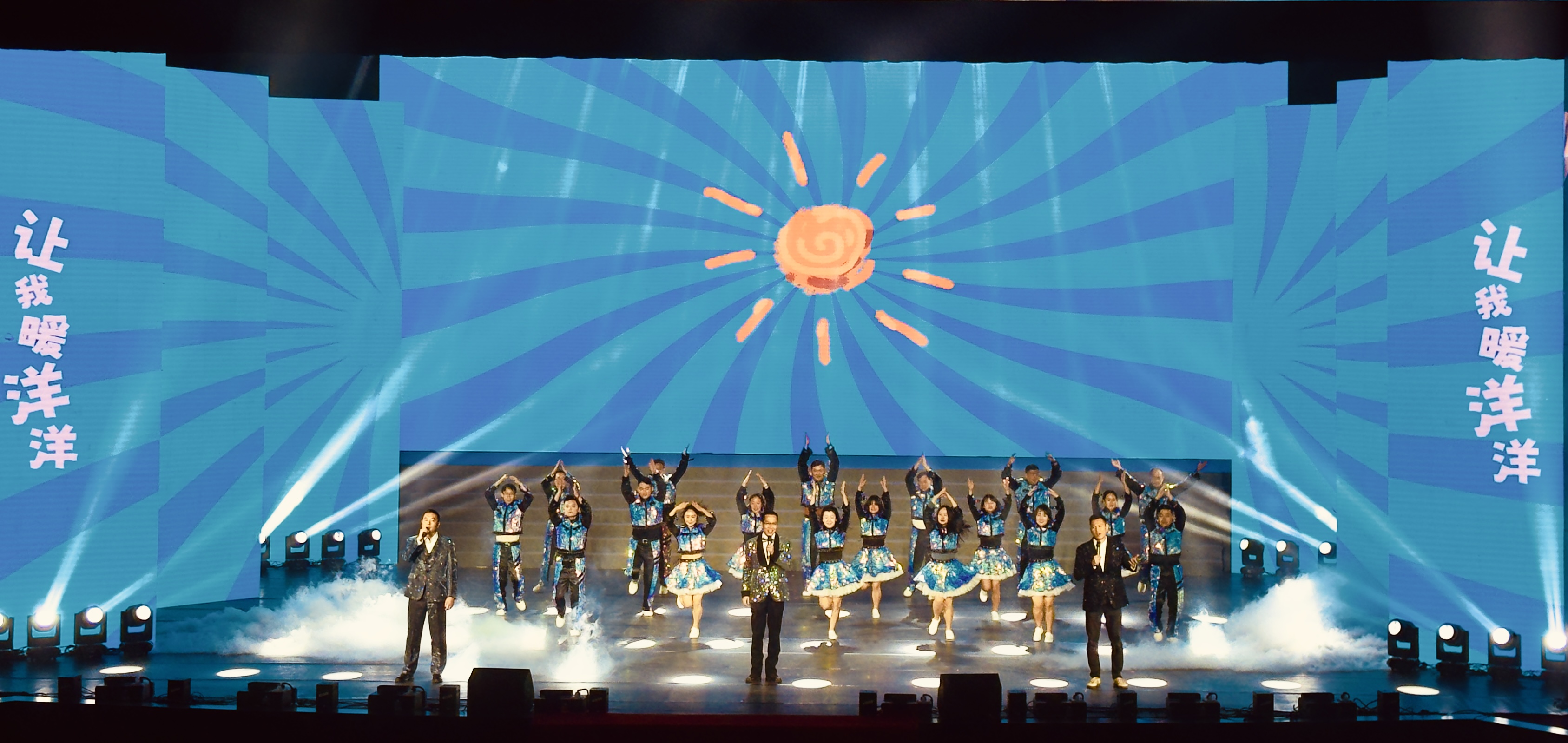 歌曲联唱《未来狂想曲》融入科技元素,通过人屏互动,展现能投员工“你中有我、我中有你”相互协同、并肩同行的精神风貌。
